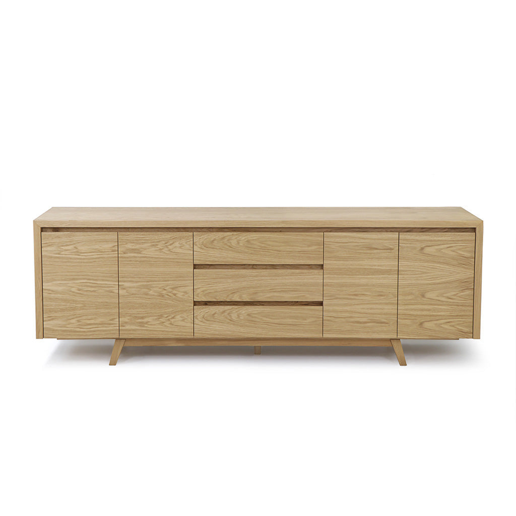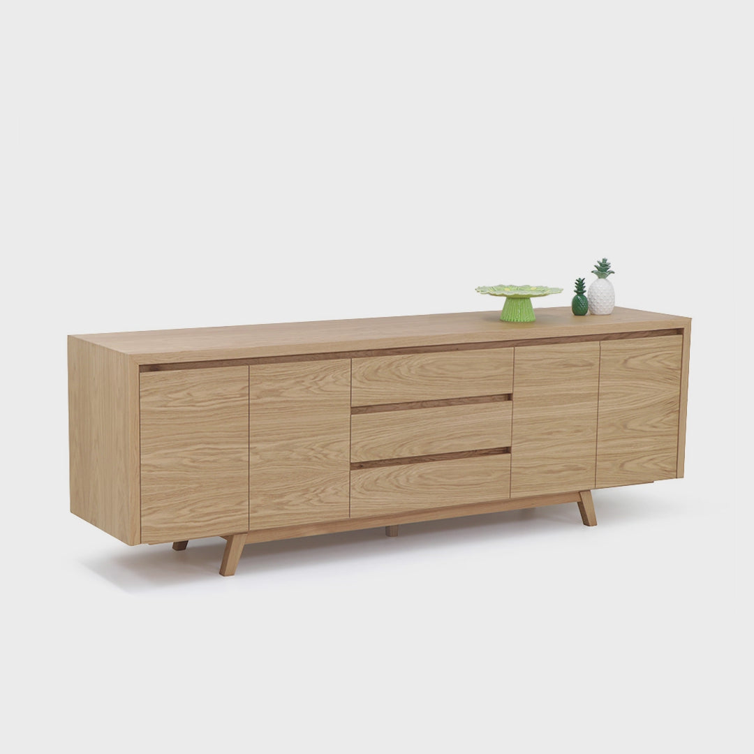 Le Buffet Suède est un buffet conçu avec une structure ultra-résistante en MDF et placage de chêne. Sa finition en vernis acrylique offre une résistance exceptionnelle aux rayures et à la décoloration pour un look classique et durable.
